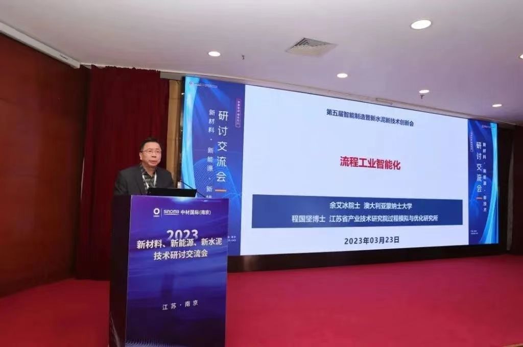 2023年3月22日,我司榮幸參加了由中材國際(南京)主辦的“2023新材料、新能源、新水泥技術(shù)研討交流會”。全國各省市水泥生產(chǎn)企業(yè)、科研/設(shè)計院所、大專院校、裝備制造廠商等單位的領(lǐng)導(dǎo)、專家學(xué)者、技術(shù)骨干等百余人參加了此次大會。 PART 01 會議開始由中材國際南京黨委書記、董事長劉仁越致辭。 之后由澳大利亞國家科學(xué)院、工程院雙院士、中國工程院外籍院士余艾冰教授作“流程工業(yè)智能化”專題演講。