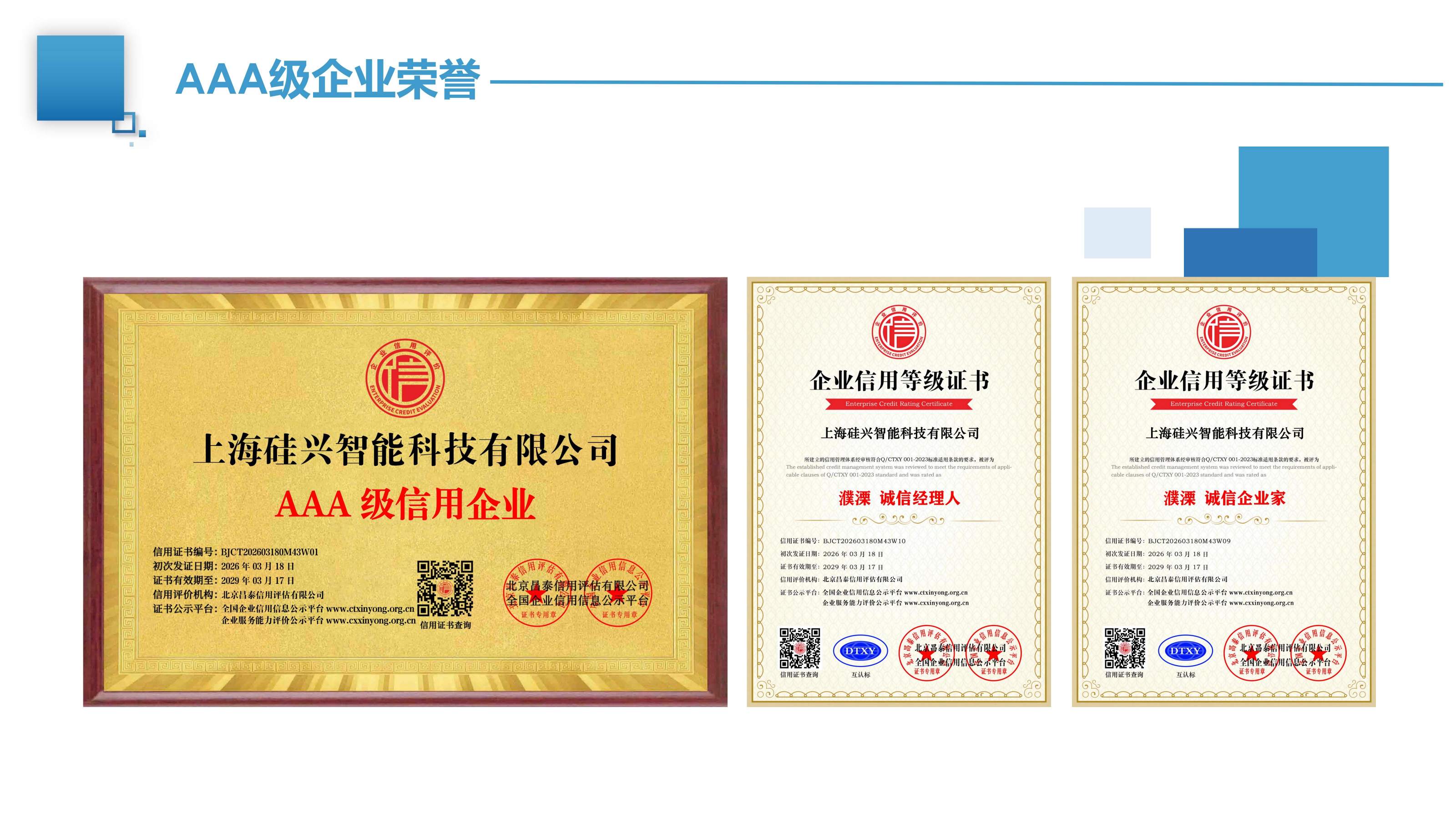 名稱:AAA級企業資質榮譽