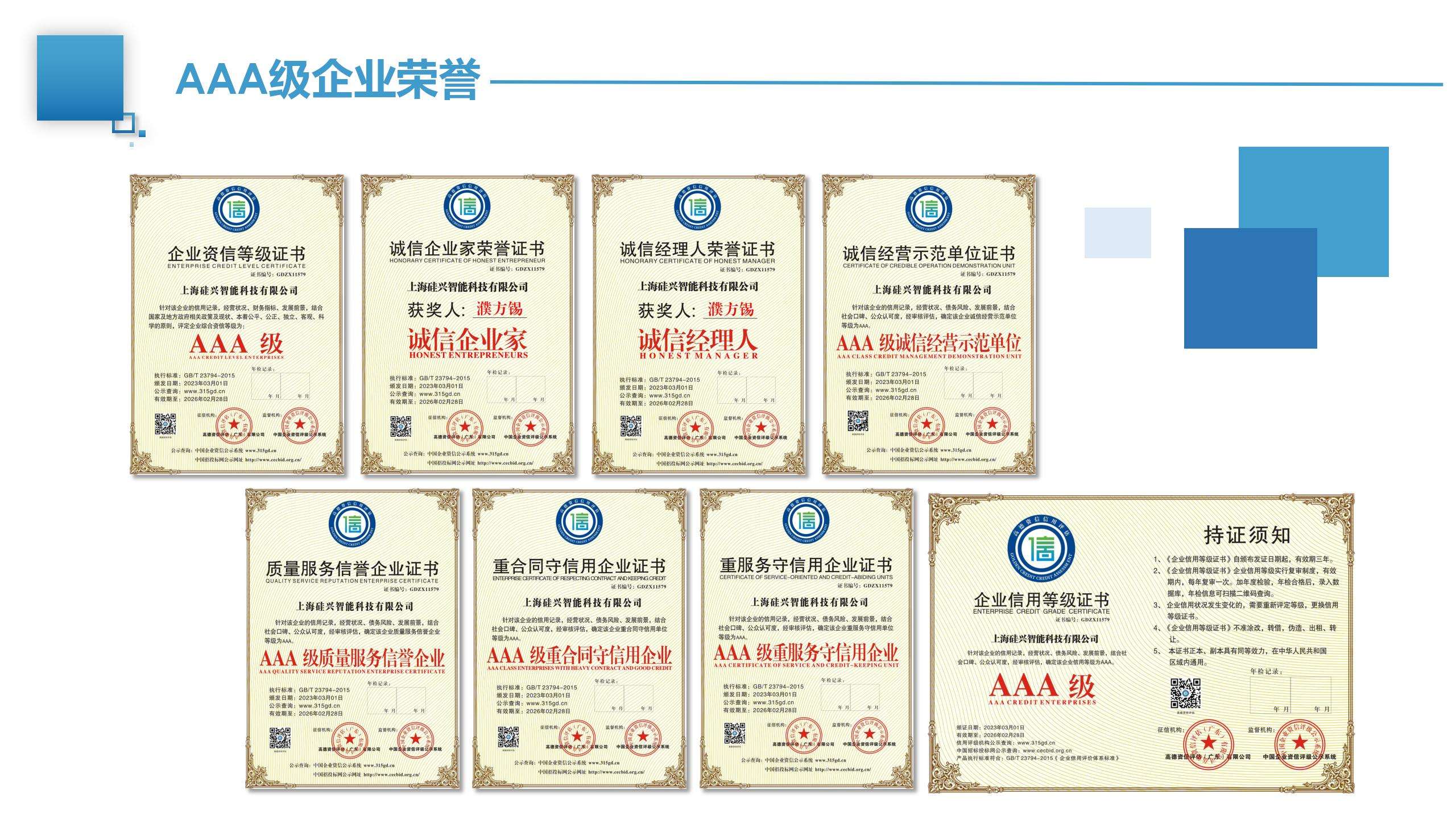 名稱:AAA級企業資質榮譽